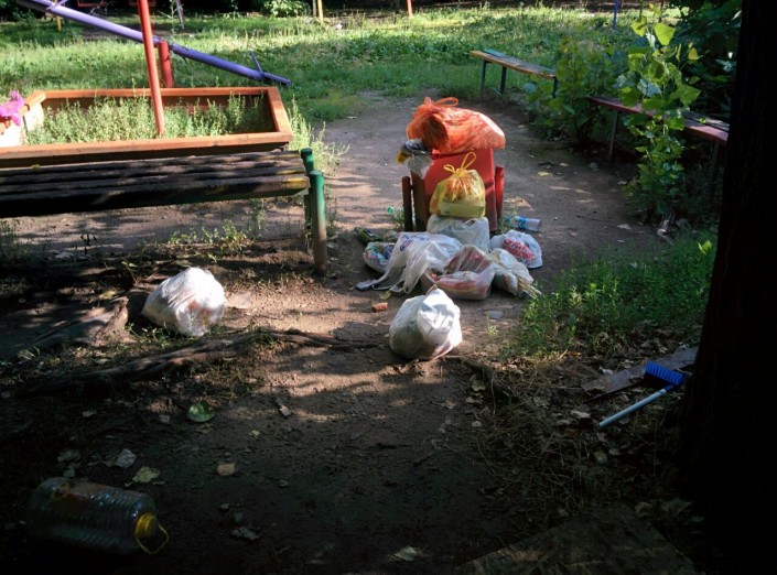 Вторая часть нашего сегодняшнего выпуска будет посвящена проблеме мусора. Автор видео особенно подчеркивает запах, который источают мусорные контейнеры, расположенные рядом с детской площадкой.