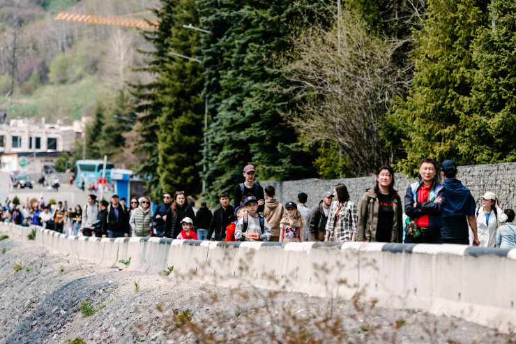 Но нет, это очередь из желающих зарядиться энергией гор и хорошо отдохнуть.