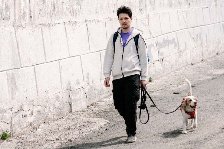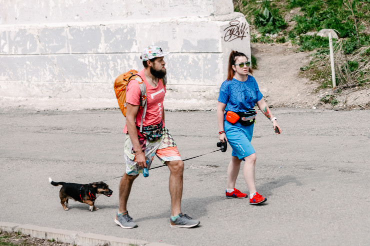 Немало и тех, кто взял с собой на прогулку своего четвероногого друга.