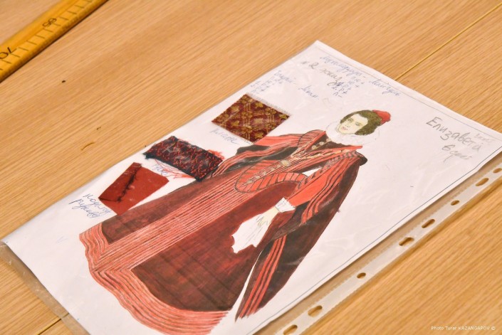 Работа по созданию костюмов в театре началась еще весной. Тогда художники разработали эскизы, подобрали образцы тканей и отделочных материалов. А уже с сентября в цехе началась работа по пошиву костюмов.
