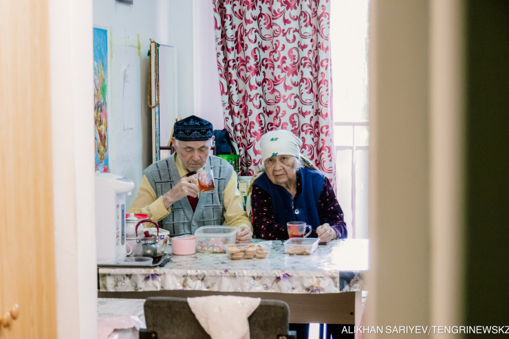 "Мы познакомились в 2020 году на чаепитии. У нас каждый месяц проводится день именинника. А в ноябре того же года поженились. Я здесь живу с 2013 года, а Куляш - с 2019. Семь лет я жил один. А когда с Куляш познакомился, решил, что вдвоем лучше, чем одному. Понравилось, что она не болтливая, воспитанная в восточных традициях. Она же из Китая приехала, всю жизнь там прожила. Скромная, характер покладистый, спокойная. Очень хорошо готовит. Бешбармак, каурдак, лагман, баурсаки", - нахваливает супругу пенсионер.