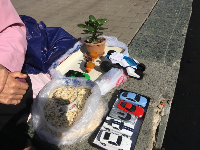 Тыквенные семечки, трансформеры, маленькая коллекция машинок и цветок - это ассортимент, которым торгует Светлана. "Стакан тыквенных семечек - 100 тенге, они очень полезные, их как лекарство можно использовать. А игрушки мне приносят продать, например, где-то у кого-то от внуков остались. Вот, например, трансформер бабушка одна дала продать", - поясняет женщина. Ей 52 года. Сама работает техничкой (два дня работает, два - отдыхает), получая 50 тысяч тенге, а в свободное время, как она сама говорит, она "реализатор".