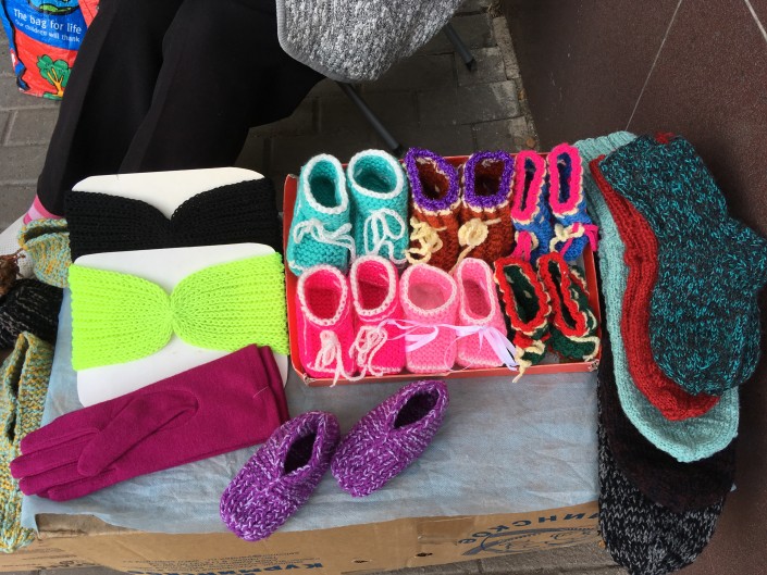 В другом районе Астаны, тоже в старой части, на торговлю вышла Ольга Ивановна. Она продает вязаные вещи. Признается, что хоть это занятие и приносит ей небольшую прибавку к пенсии, но все же это не главное. На улицу с товаром она выходит в том числе и для того, чтобы общаться с людьми.
