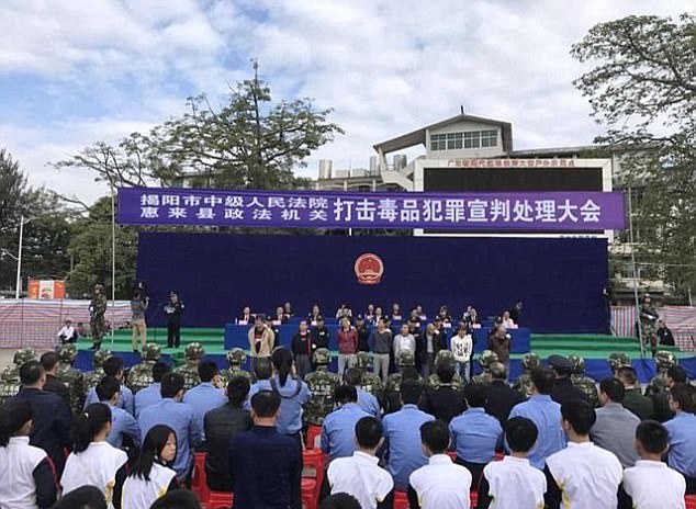 На сцену стадиона вывели 12 преступников, большинство из которых были признаны виновными в торговле наркотиками. Другие - за убийства и ограбления.