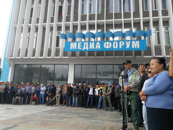 В Бишкеке возле здания "Форум", где расположен штаб Атамбаева и подконтрольный ему телеканал "Апрель", начался митинг сторонников бывшего главы государства. В нем принимают участие около 500 человек.