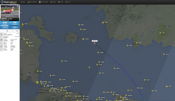 Напомним, малайзийский самолет Airbus 320-200 авиакомпании AirAsia, совершавший рейс из индонезийского города Сурабая в Сингапур, пропал с диспетчерских радаров в ночь на 28 декабря. По данным перевозчика, в последний раз он выходил на связь в 07.24 по местному времени. По данным авиакомпании, на борту воздушного судна находились 155 пассажиров и семь членов экипажа. Глава отдела по связям с общественностью Basarnas ранее заявил, что малайзийский самолет столкнулся с турбулентностью, попытался изменить курс и рухнул в море. Минтранс пока не подтвердил эту информацию. Рассматриваются две версии причин трагедии: плохие погодные условия или недостаток топлива.