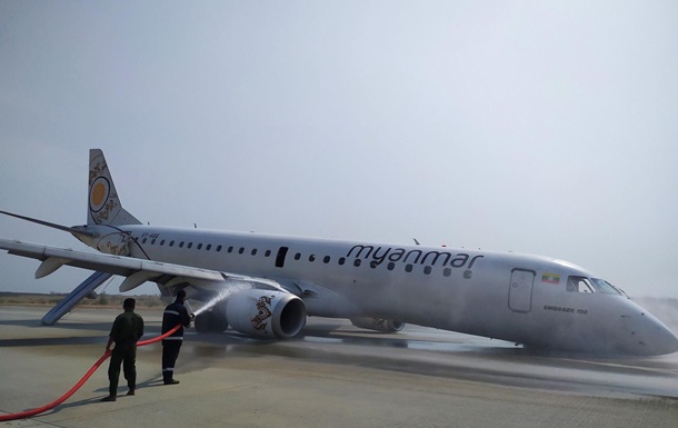 Появилось видео из салона самолета, севшего без шасси в аэропорту Мьянмы © REUTERS