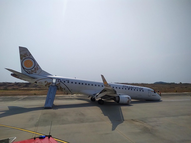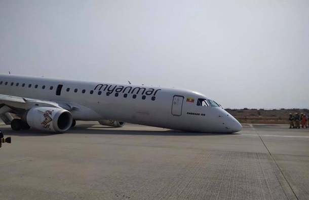 В Сети появилось видео инцидента в аэропорту Мандалая (второй по величине город в Мьянме) с пассажирским лайнером Embraer 190 местной авиакомпании Myanmar National Airline, сообщает CNN.