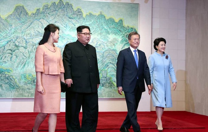 Супруга северокорейского лидера Ким Чен Ына Ли Соль Чжу и жена президента Южной Кореи Мун Чжэ Ина Ким Чжон Сук встретились в демилитаризованной зоне в пункте переговоров Пханмунджом. Первые леди двух государств впервые проводят подобную встречу, сообщает Yonhap.