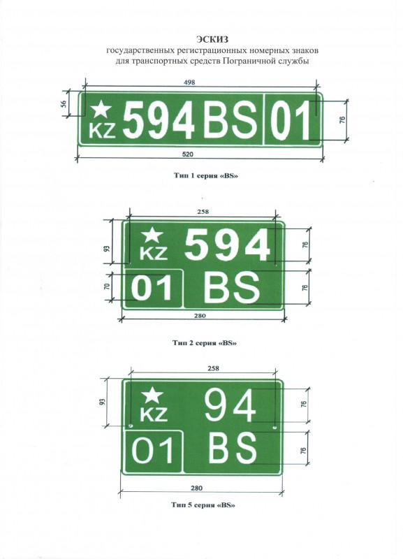 В Пограничной службе КНБ РК пояснили, что фон номерного знака - "зеленый", был выбран в соответствии с тем, что основным цветом символов Пограничной службы является зеленый цвет - флаг Пограничной службы, эмблема, фуражка. Звездочка на номерном знаке означает принадлежность Пограничной службы к войскам Республики Казахстан, буквы ВS - означают Border service - пограничная служба с английского языка.