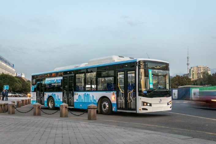 Новый электроавтобус Golden Dragon казахстанской сборки в тестовом режиме проехал по улицам Алматы. Отечественный электробус был предоставлен городу для тестовых испытаний компанией "Астана Моторс".