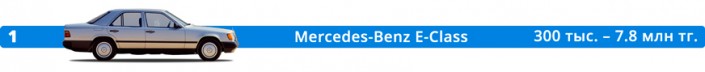 Лидером рейтинга оказалась вовсе не Toyota Camry, а Mercedes-Benz E-Class в кузове W124. Таких в продаже более 2.3 тысячи. Чаще всего встречаются машины с 2.3-литровым мотором. Цены варьируются от 300 тысяч тенге за экземпляры едва на ходу до 7.8 миллиона за знаменитый E500.