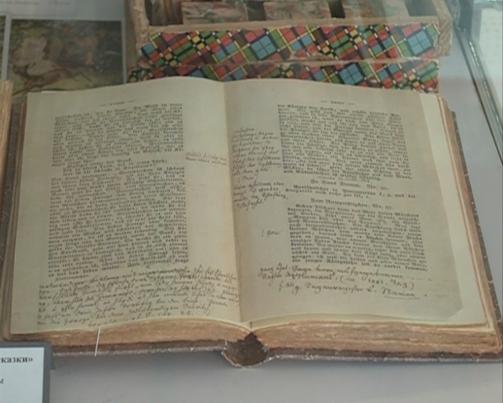 Страницы двухтомника содержат пометки, комментарии и дополнения авторов. Это редкий и самый ценный экспонат литературного музея братьев Гримм в германском городе Кассель. Его директор - Бернхард Лауэр предоставил этот раритет Семейскому музею-заповеднику Абая Кунанбаева для экспозиции, которую здесь организовали по мотивам сказок братьев Гримм.