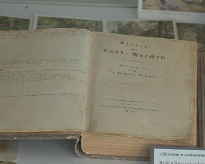 "Слушая сказки своей тетушки Доротеи, братья Гримм собирали их, а также сказки по всей немецкой земле. Они литературно обработали и выпустили этот первый двухтомник", - рассказывает замдиректора музея-заповедника Абая Мейрамгуль Кайрамбаева.
