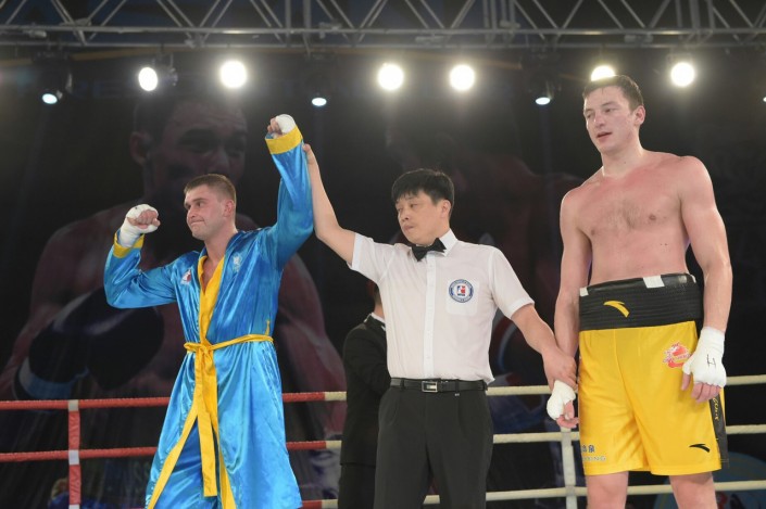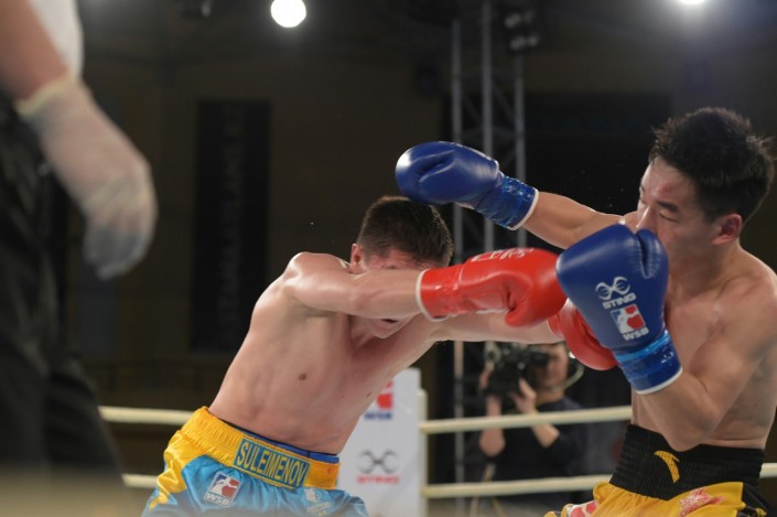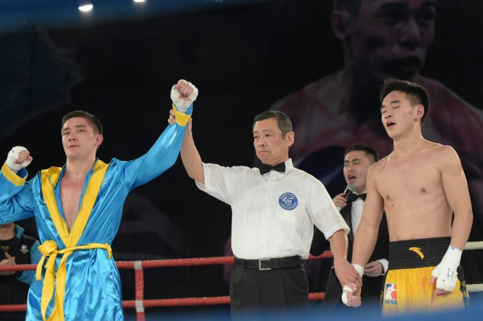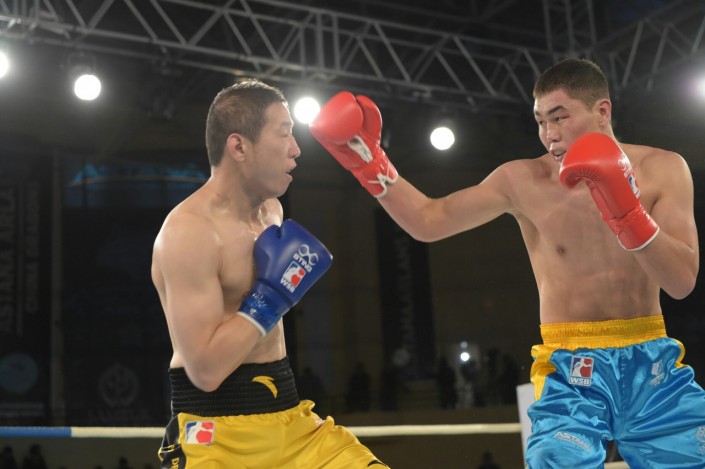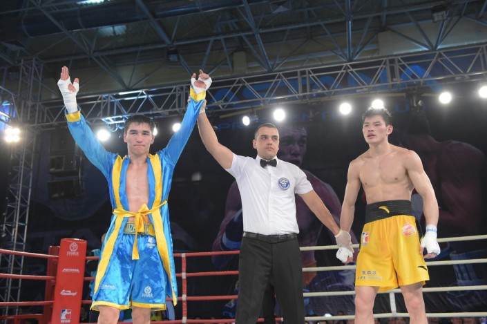 В четвертом бое матчевой встречи на ринг вышли Сапарбай Айдаров и Минганг Жао в весе до 75 килограммов. Казахстанец был сильнее - 3:0.