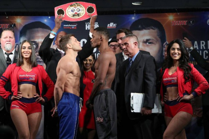 На процедуре взвешивания американец показал 159,6 фунта, а украинец - 159,4. © boxingscene.com