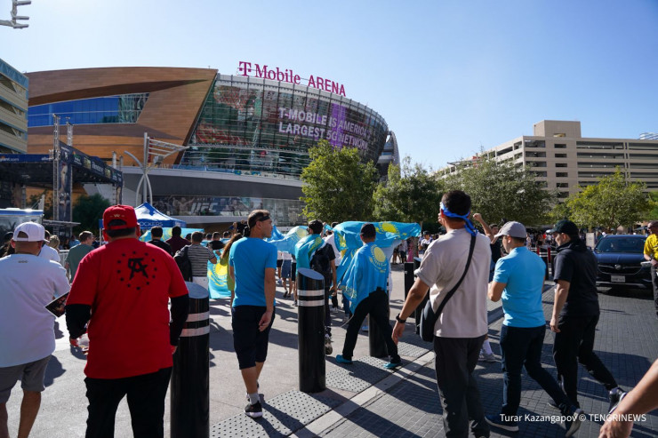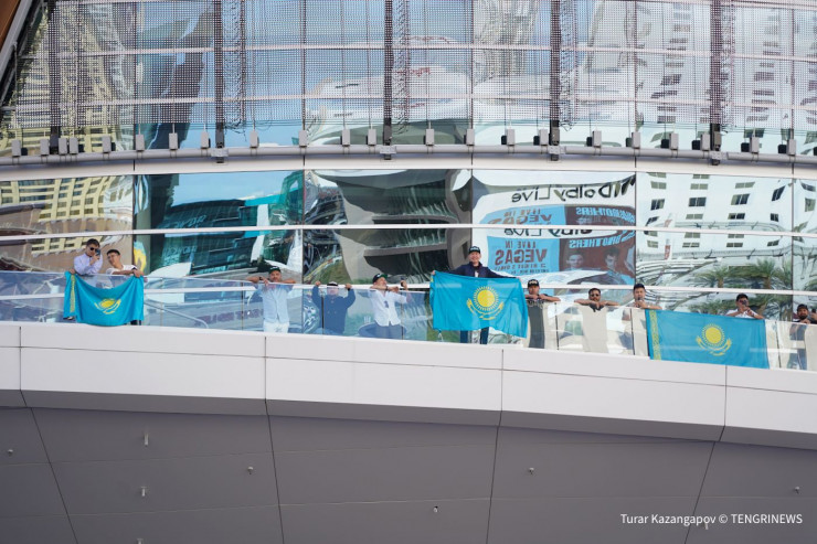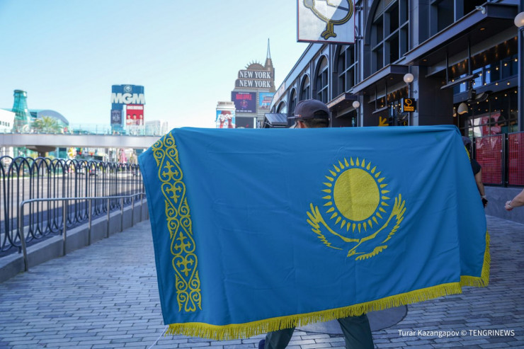Сегодня в Лас-Вегасе очень много казахстанских флагов.