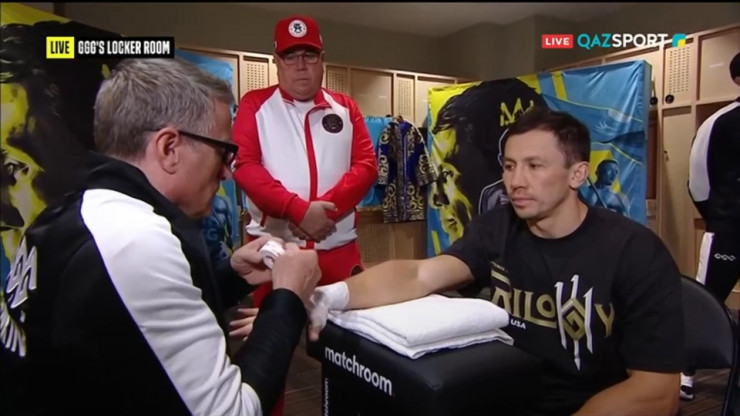 Геннадий Геннадьевич максимально спокоен. Сзади можно увидеть его знаменитый чапан, в котором он выходит на свои бои.