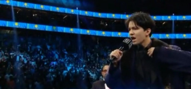 Гимн Казахстана спел Димаш Кудайберген. Теперь звучит Seven Nations Army и на ринг выходит Геннадий Головкин!