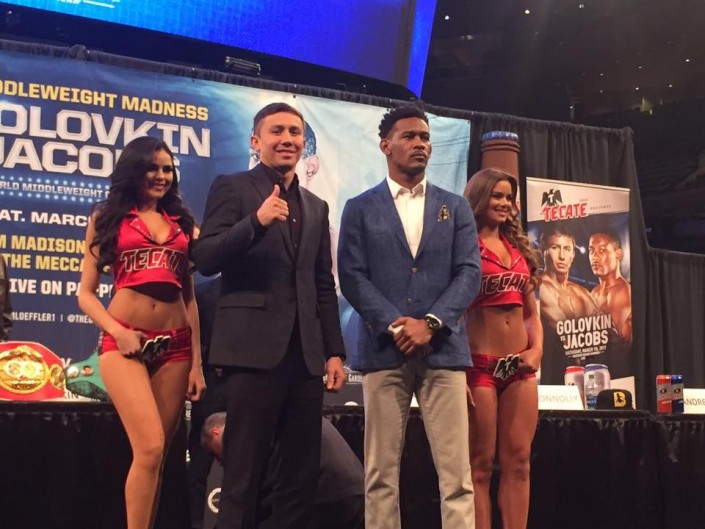 Бой Головкин - Джейкобс состоится 18 марта в Нью-Йорке на арене Madison Square Garden. В США поединок покажут по системе платных трансляций PPV на телеканале HBO. В Казахстане вечер бокса будут транслировать "Казахстан" и KazSport.