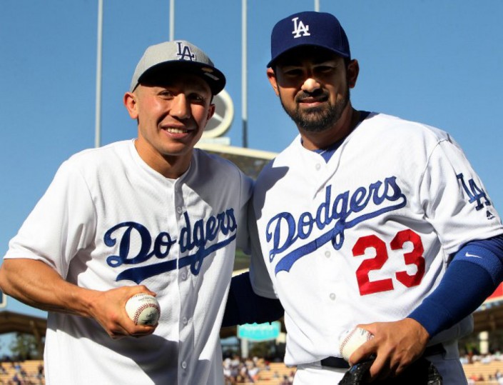 Торжественное вбрасывание состоялось перед началом матча между командами "Лос-Анджелес Доджерс" и "Сан-Франциско" в Лос-Анджелесе.