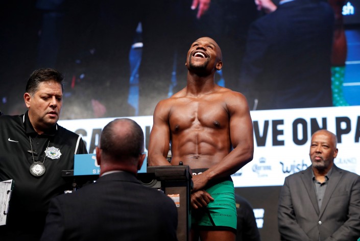 МакГрегор показал на весах 153 фунта (69,4 килограмма), а Мейвезер значительно не добрал до лимита первого среднего веса, показав 149,5 фунта (67,8 килограмма). "Мейвезер приучил к тому, что в случае боев в первой средней весовой категории в бою он весит столько же, сколько и на взвешивании. Вряд ли что-то изменится и в этот раз. Что касается МакГрегора, то ожидается, что он прибавит около 7-8 килограммов. То есть разница в весе во время боя может достичь 10 килограммов. Мейвезер прокомментировал это следующим образом: "Бои выигрывает не вес", - пишет издание.