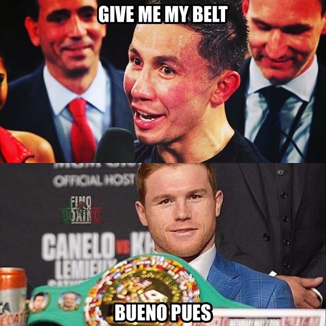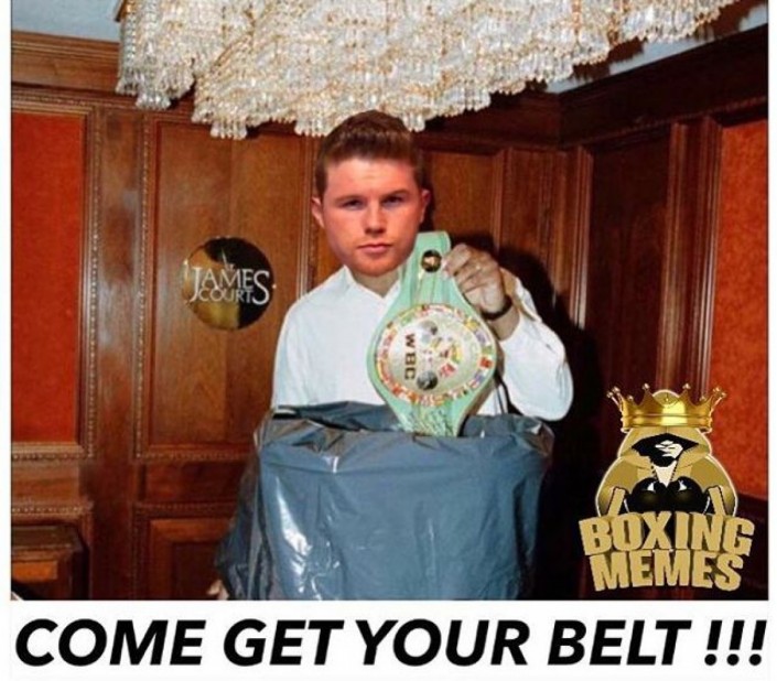 Между тем любители бокса по всему миру отреагировали на отказ "Канело" от пояса множеством мемов и смешных коллажей в соцсетях, считая, что настоящий чемпион может лишиться пояса только в поединке. Спортивный портал Vesti.kz сделал целую подборку таких изображений.