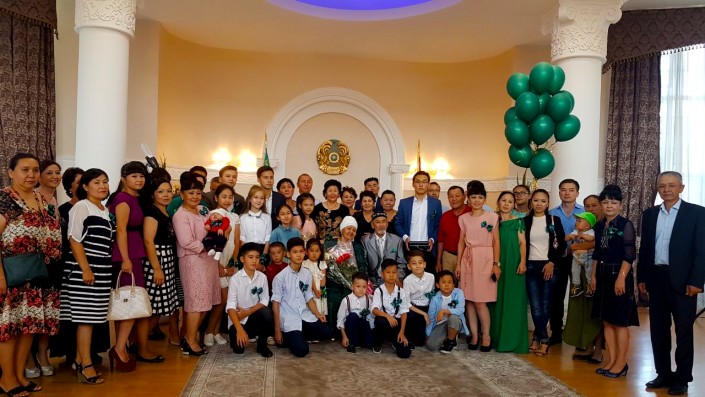 На очередную свадьбу пара оделась как подобает - невеста в специально сшитом безупречном платье изумрудного цвета в пол. Жених в сером костюме и зеленой тюбетейке. Гости также соблюли дресс-код. Нургуль Кадыргулова и Келгенбай Жасапбергенов поженились в 1962 году, с тех пор родили и воспитали восьмерых детей, более 30 внуков и правнуков. "Мне было 19 лет, а ей - 16, - продолжает жених Келгенбай-ата. Сразу мне она понравилась, это же любовь с первого взгляда. Я по 16 часов в сутки работал, чтобы обеспечить семью. Дом, конечно, был, я отстроил сам. Сейчас смотрю на молодежь, ругаются, разводятся, едва поженившись. Когда мы с Нургуль слышим, что чья-то дочь вернулась в отчий дом или чей-то сын бросил жену и детей, очень сильно переживаем. Молодые люди нетерпеливые, а для сохранения брака нужны терпеливость и выдержка".