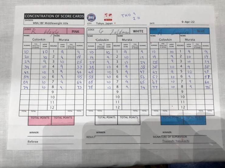 Появились судейские записки боя Головкин - Мурата