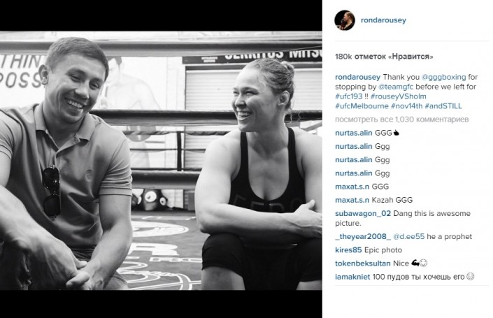 Ронда Роузи поблагодарила Головкина за поддержку перед титульным боем Фото со страницы Twitter GGG