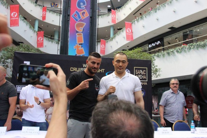 Первый и единственный чемпион мира в двух весовых категориях из Казахстана Бейбут Шуменов (17-2, 11 КО) и его соперник Хизни Алтункая (30-1, 17 КО) из Турции перед титульным боем в Астане провели дуэль взглядов, передают Vesti.kz.