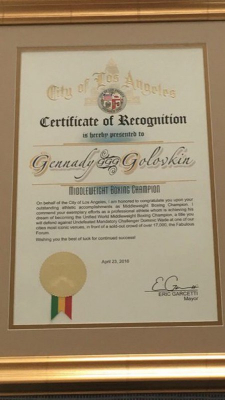 Удачи в поединке с Уэйдом пожелал Головкину мэр Лос-Анджелеса Фото с сайта boxingscene.com