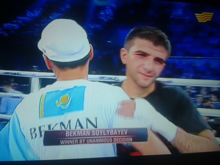 Это седьмая победа 25-летнего Сойлыбаева на профессиональном ринге. Теперь его рекорд - 7 побед (три нокаутом), 0 поражений, 0 ничьих.