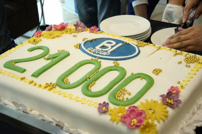 В этот день все гости отдела продаж BI Group в бизнес-центре Viva Plaza разделили неожиданную радость с семьей Галимжановых, присоединившись к чаепитию с тортом.