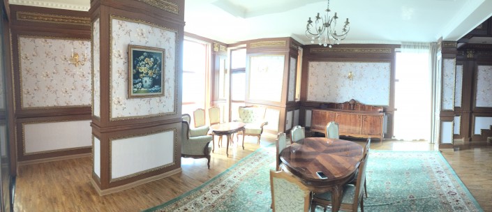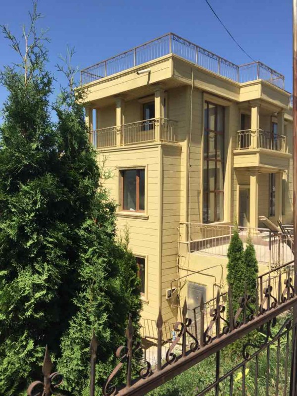 "650 кв.м, уютный европейский дом 2010 года постройки. В огороженном коттеджном городке. Недавно завершенный новый евроремонт: мрамор, оникс, дорогие столярные изделия, паркет дуб античный (Финляндия), двери - массив ольхи, венецианский, сантехника Villeroy & Boch, люстры итальянского Moroso и Swarovski, теплые полы, вся мебель от итальянских и французских производителей, бытовая техника европейских производителей. Первый этаж: прихожая, гостевая спальня, гостевая ванная комната, кухня с гостиной-столовой и выходом на террасу, холл, витражи. Второй этаж: спальня с ванной комнатой и гардеробной, гостевая спальня с ванной и гардеробной, кабинет, детская, общая ванная комната. Третий этаж: большая игровая комната, сезонный гардероб, кладовая. Цоколь: кинозал с караоке, кухня, спортзал, спальня для персонала, санузел, котельная. Участок ровный, шикарный вид на горы и город, хорошие соседи. Автоматические ворота, камеры в доме и территории с удаленным доступом, жалюзи, сигнализация. Европейский текстиль. Городские коммуникации: центральное водоснабжение и газ, высокоскоростной интернет, кабельное и спутниковое телевидение, цифровая телефонная сеть, стабильный источник питания трехфазный из двух линий (по желанию). Газон, цветы, хвойные насаждения, фруктовые деревья. Удобный доступ для автомобилей. Гараж на две машины. Место очень подходит для любителей активного и здорового образа жизни. Большинство комнат в доме открывается прекрасный вид на горные склоны, сады и ночного города", - говорится в первом объявлении. Стоимость недвижимости - около двух миллионов евро.