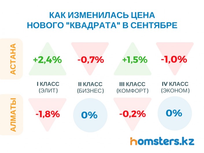 В сентябре старое жилье и элитные новостройки подорожали на фоне ослабления тенге, а в некоторых сегментах первичного рынка отмечено снижение цен. К такому выводу пришли специалисты аналитического центра онлайн-сервиса для покупателей недвижимости Homsters.kz, передает корреспондент Tengrinews.kz.