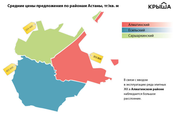 В Есильском районе также наблюдается самый высокий уровень средних цен по городу - более 400 тысяч тенге за квадратный метр. Кроме того, левобережье бьет рекорды по доле выставленного на продажу жилья от общего жилого фонда. По данным чиновников, в данной части города эксплуатируется около 38 тысяч квартир. По приблизительным подсчетам, здесь продается почти каждая шестая квартира.