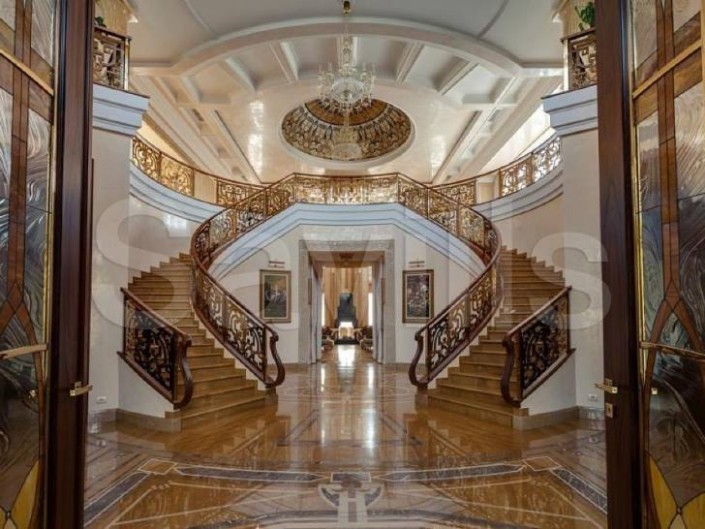 Резиденция, построенная в классическом стиле, находится в подмосковном элитном поселке "Сколково" (в двух километрах от МКАД). Жилая площадь дома - 2 570 квадратных метров. Площадь участка, на котором выполнен дорогой ландшафтный дизайн, - 2,3 гектара.