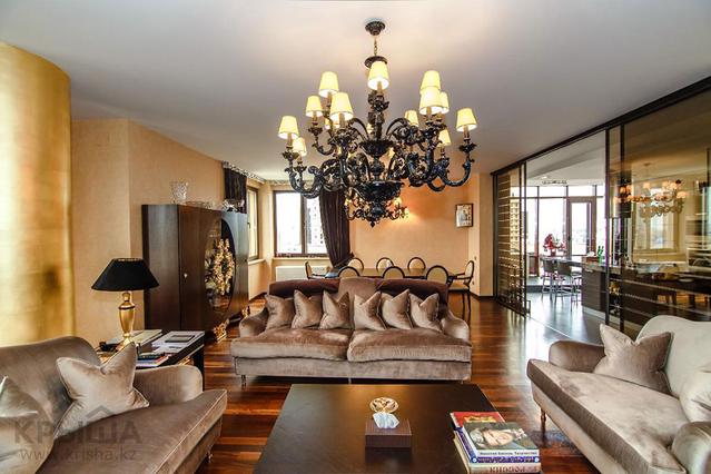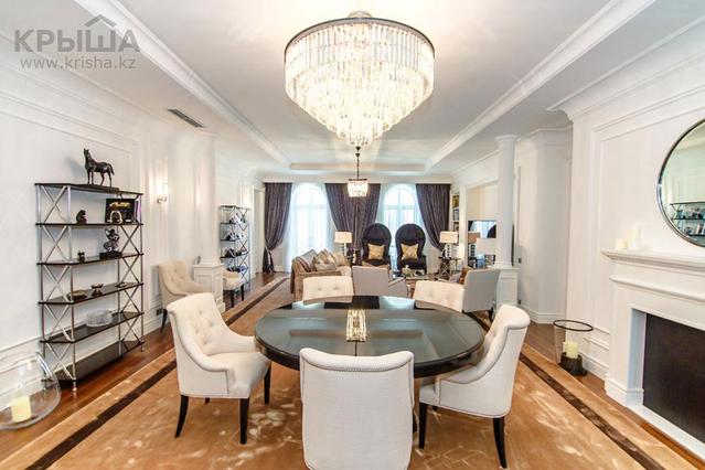 На третьем месте разместилась 4-комнатная квартира за 608,4 миллиона тенге. Жилье общей площадью 230 квадратных метров расположено на последнем этаже 6-этажного ЖК "Парижский квартал" 2015 года постройки. Изысканный интерьер выполнен из дорогостоящих зарубежных материалов: мрамора, массивной доски, декоративной лепнины, тканевых обоев, аксессуаров, встроенной мебели. В апартаментах имеется гостиная, объединенная со столовой, кабинет с камином, две спальни, три гардеробные, четыре санузла. Недвижимость продается с мебелью, прилагаются три паркинга. Размер целевых взносов достигает 180 тенге за квадрат, то есть минимум 41 400 тенге в месяц. К этому добавляются городские тарифы за услуги воды, газа, электричество.