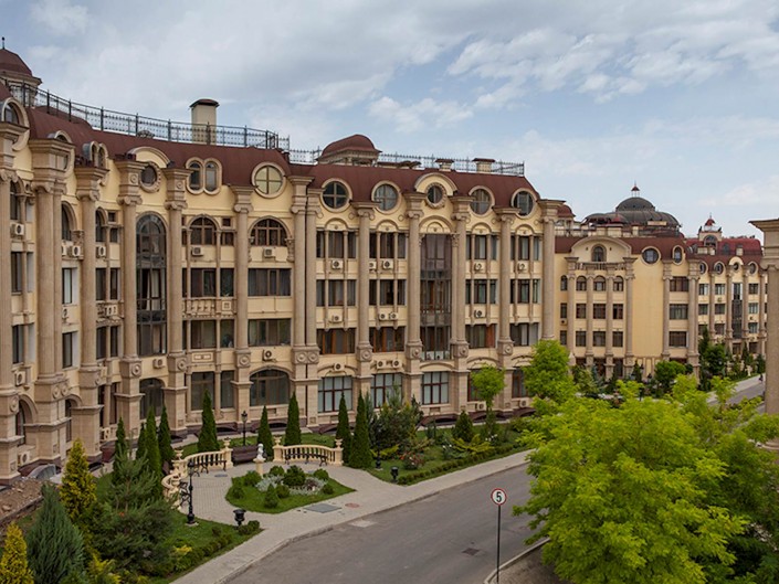 Royal Gardens - еще один проект, расположенный на горном плато по улице Дулати южнее проспекта Аль-Фараби. Дизайнеры постарались максимально сохранить существующий природный ландшафт и создать атмосферу курортного городка - на территории высадят более полутора тысяч деревьев, около 15 000 кустарников и огромное количество цветов. Естественное оформление дополнено беседками, аллеями, перголами и площадками для барбекю. Кроме того, трехэтажные дома полностью отвечают экологическим трендам, а с террас открываются виды на горы.