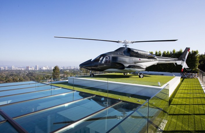 Вместе с домом покупатель получит коллекцию автомобилей общей ценой в 30 миллионов долларов, среди которых есть как раритетные авто 1930-х годов, так и современные суперкары, такие как Bugatti. На крыше находится вертолетная площадка с частным вертолетом.