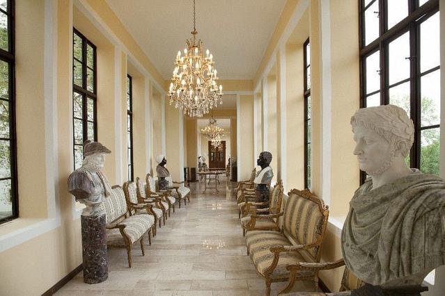 Площадь здания без учета прилегающих построек составляет более пяти тысяч квадратных метров, а территория поместья равна 70 тысячам квадратных метров. На ней расположены взлетно-посадочная площадка для вертолета, озеро, река, парковая зона с 200 антикварными статуями. При этом подчеркивается, что произведения искусства и предметы антиквариата, которых там огромное количество, по словам представителей владельца, продаются отдельно.