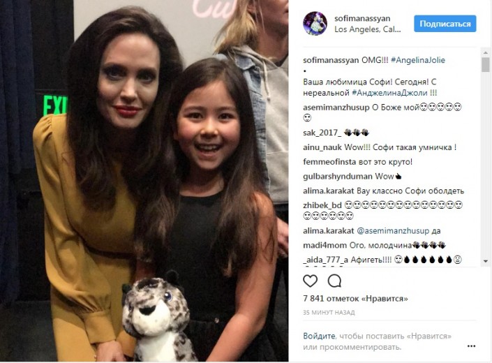 Юная артистка из Казахстана Софи Манасян, которая сейчас проживает в Лос-Анджелесе, выложила в Instagram совместную фотографию с голливудской актрисой Анджелиной Джоли, передает Tengrinews.kz.