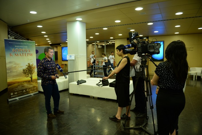 Фильм "Дорога к матери" Акана Сатаева представлен на Московском кинофестивале Режиссер Акан Сатаев на пресс-конференции в Москве
