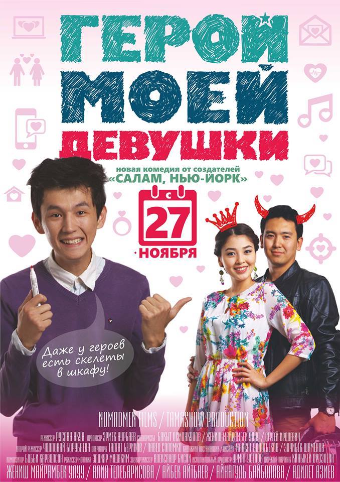 За съемки молодежной комедии взялся режиссер самого кассового фильма кыргызстанского проката "Салам, Нью-Йорк" Руслан Акун. Отметим, что в ленте "Герой моей девушки" Алия Телебарисова исполнила роль возлюбленной главного героя. Ее партнером по фильму стал актер популярного проекта "Эки адам" Жениш Майрамбеков. Кино выйдет в прокат 27 ноября пока только в Кыргызстане.