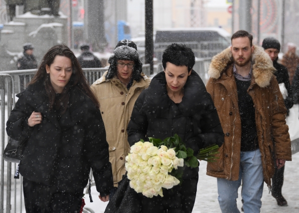 С самого утра к художественному театру имени Чехова идут люди. Практически каждый несет цветы - как букеты, так и венки, корзины цветов.