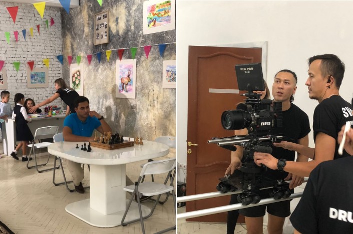 "Мы планируем снимать целый цикл фильмов о свадьбе и историях любви "SVADBA.KZ, Соединяя сердца". Этот фильм станет первой ласточкой масштабного проекта. Съемки стартовали 21 августа, торжественно разбили тарелку на счастье. Ожидается, что мы закончим съемки в первой половине сентября", - отметил Жан Муканов.