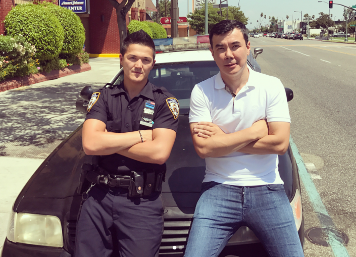 В новой картине сыграл американский полицейский из Шымкента Димаш Ниязов. Коянбаев рассказал, что роль писали специально для него. Для съемок Димашу пришлось отпроситься с работы и прилететь в Лос-Анджелес из Нью-Йорка.