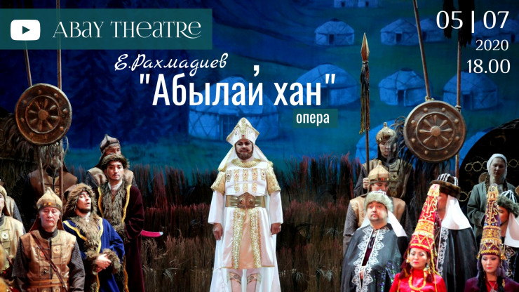 5 июля в 18.00 на официальном YouTube-канале театра Abay Theatre пройдет онлайн-показ последней оперы Еркегали Рахмадиева "Абылай Хан". Над премьерой оперы "Абылай Хан" работали выдающиеся режиссер-постановщик, Народный артист РФ Юрий Александров и художник-постановщик, народный художник РФ Вячеслав Окунев.