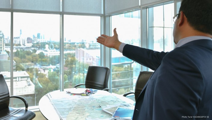 Кабинет нового главного архитектора столицы расположен на девятом этаже бизнес-центра на правом берегу Нур-Султана. Мы стоим у большого панорамного окна (оно тут во всю стену). Наш собеседник признается, что недоволен открывающимся видом.